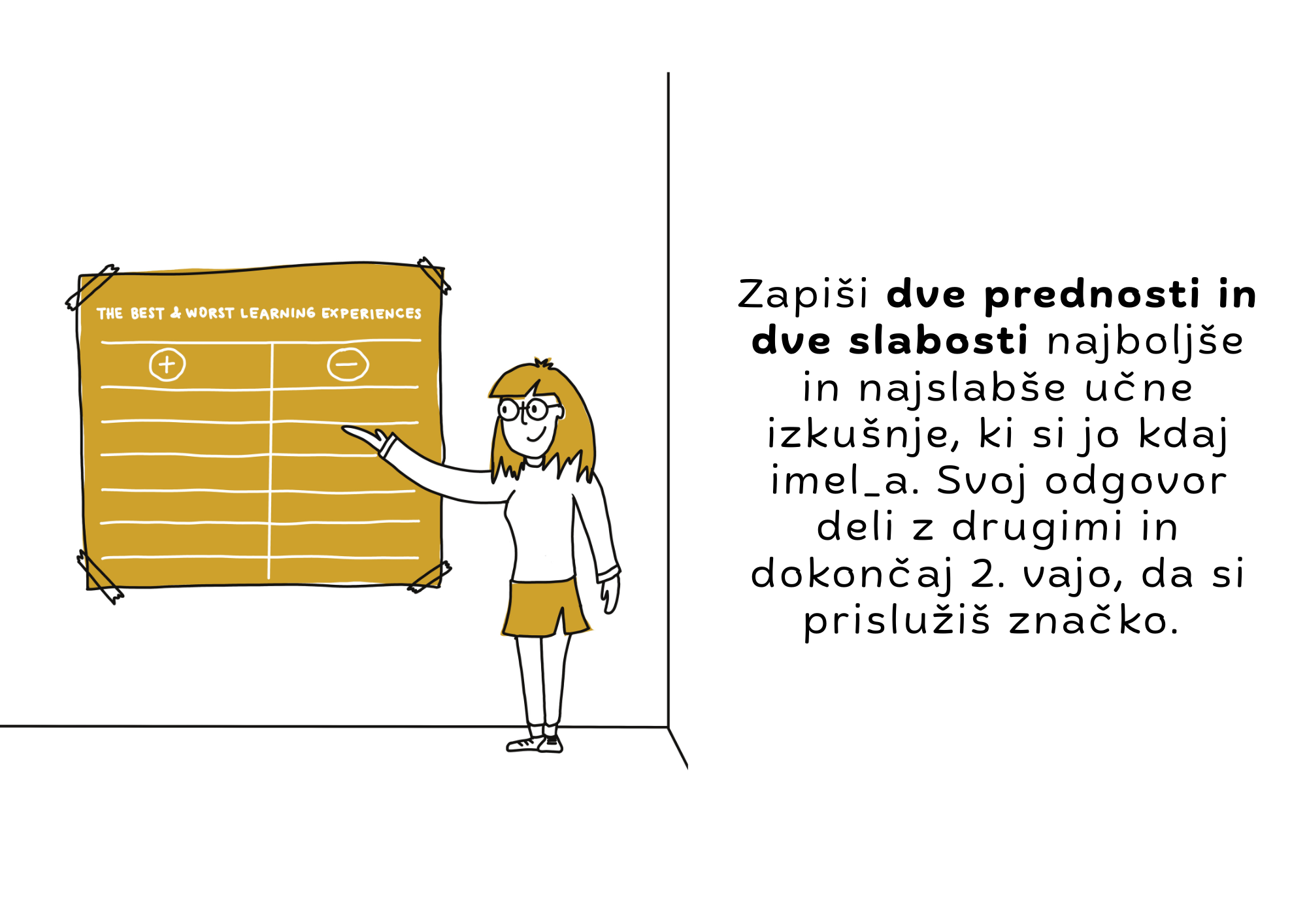 Ste pripravljeni? Začnimo s prvo vajo: "Najboljša in najslabša učna izkušnja"!